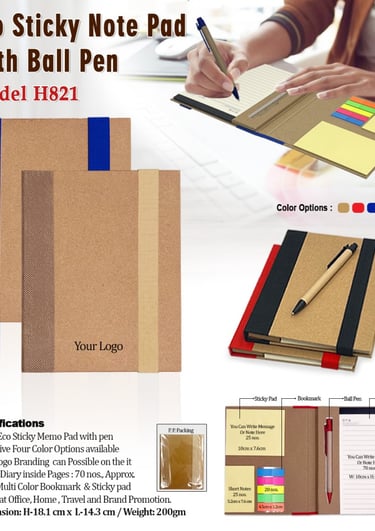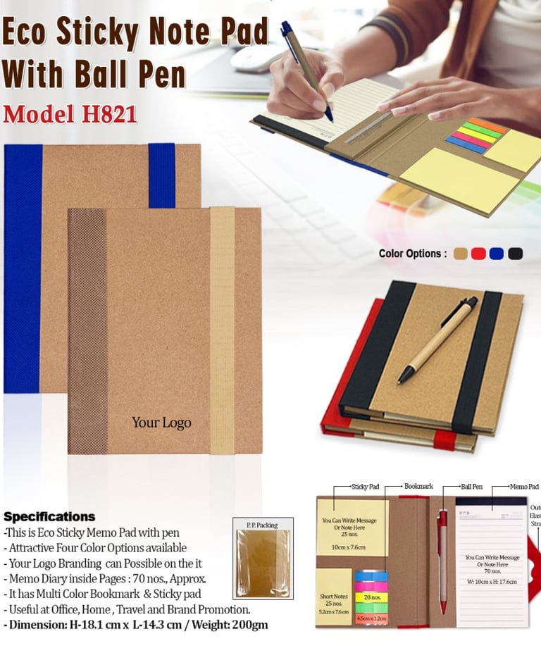 Eco Sticky Notebook with Ball Pen – Recycled & Ready for Branding H826