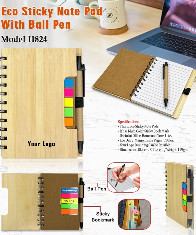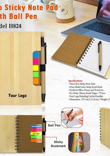 Eco Sticky Pad – Memo Pad with Pen (Spiral Eco Diary - H811)