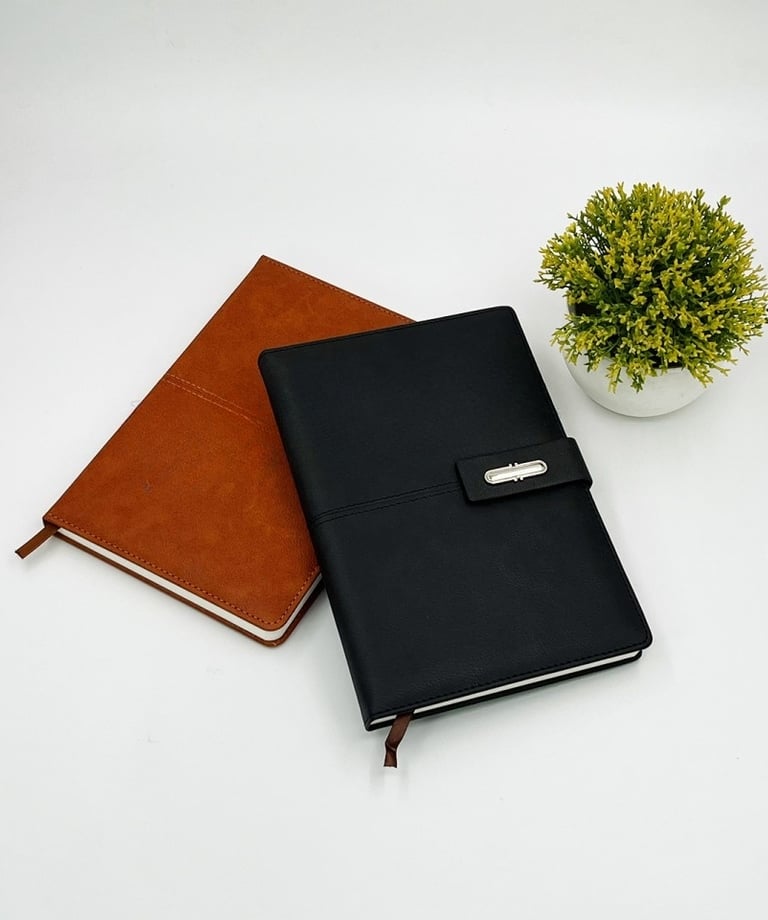 Branded A5 PU Leather Office Notebook Diary – Golden Border with Magnetic Strap - Modal H1054